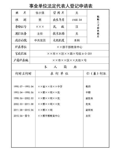 《事业单位法定代表人登记申请表》填写说明